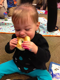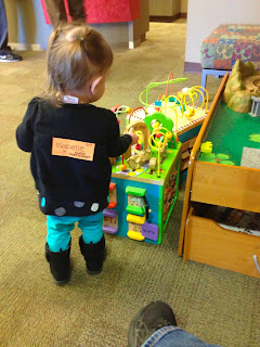 There were so many kids there but the girls didn't seem to mind. We go there often enough now that I think they feel comfortable to play without worry. When we went in for story time it was packed! Normal my girls can't stand to be packed into a room (something to do with being in a belly for 9months and having to share that tiny room) But today they loved it! Especially when Curious George showed up!